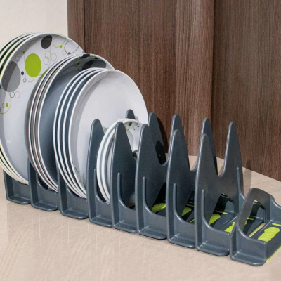 Tento 5-dílný držák talířů je vhodný pro libovolnou velikost talířů. Protiskluzová spodní část zajišťuje bezpečnou a pevnou základnu.Pomocí jednoduchého zaklapnutí mohou být prvky rozšířeny a přizpůsobeny tak požadovanému počtu talířů.